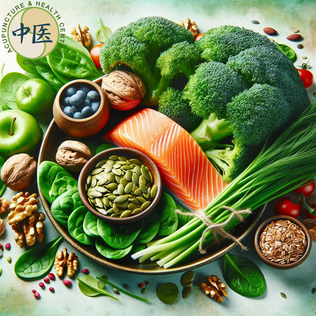 Voedingsadviezen voor het Versterken van Qi en Voeden van Bloed Volgens Yang (2017), speelt voeding een cruciale rol in het versterken van Qi en het voeden van het bloed, twee essentiële componenten voor gezond haar volgens TCM-principes. Een dieet dat rijk is aan voedingsstoffen die Qi versterken en bloed voeden, kan helpen de haarfollikels te voeden en haarverlies te voorkomen. Voedingsmiddelen die rijk zijn aan ijzer, eiwitten, omega-3 vetzuren, en vitamines zijn vooral belangrijk. Groene bladgroenten zoals spinazie en boerenkool zijn rijk aan ijzer en vitaminen, die essentieel zijn voor de bloedcirculatie naar de hoofdhuid. Noten en zaden, zoals walnoten en pompoenpitten, bevatten omega-3 vetzuren en zink, die de haargroei ondersteunen en haaruitval kunnen verminderen.