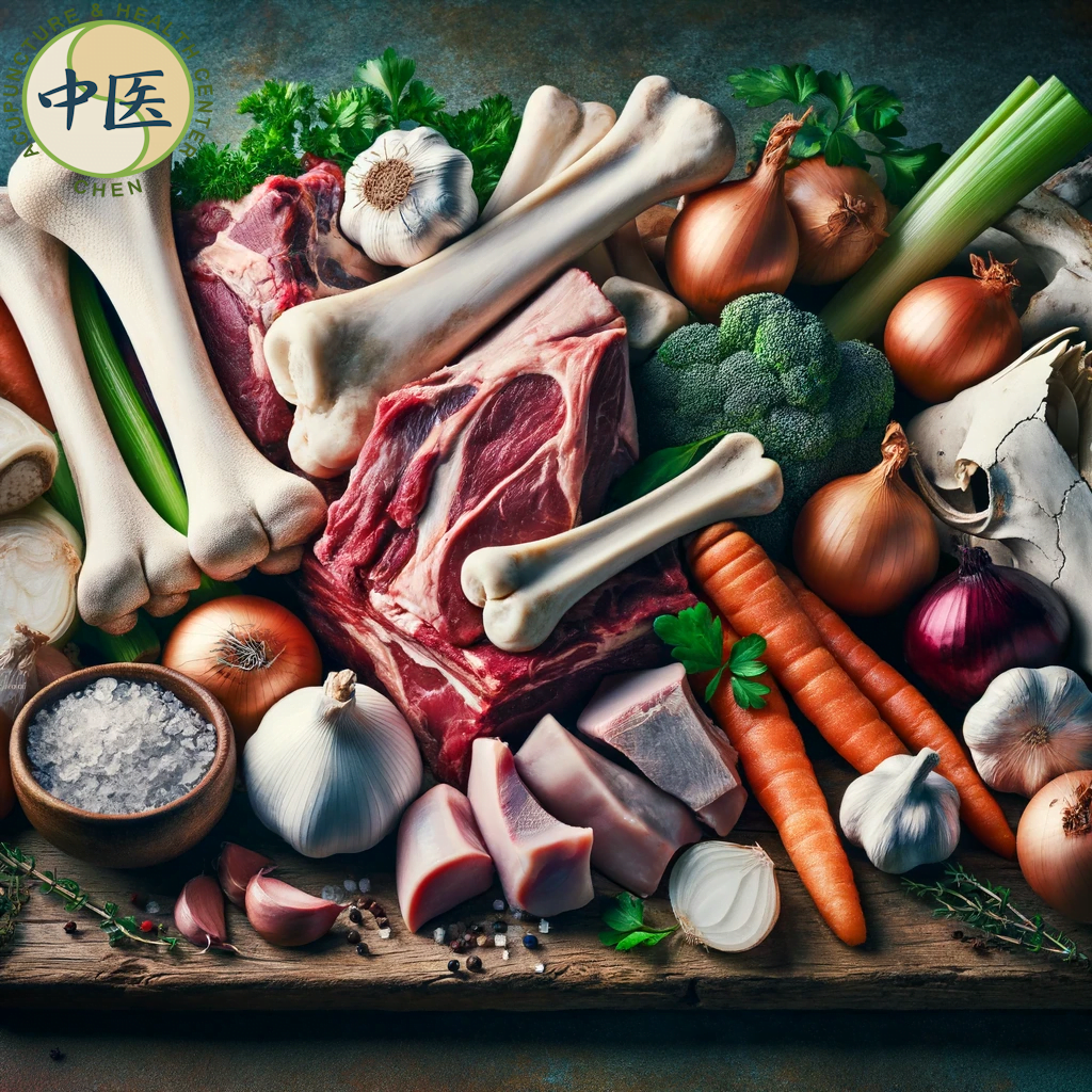 In de Traditionele Chinese Geneeskunde (TCM), wordt bottenbouillon al lange tijd geprezen om zijn geneeskrachtige eigenschappen en voedingswaarde. In TCM wordt bottenbouillon niet alleen gezien als een voedend voedsel, maar ook als een krachtig geneesmiddel, in staat om de Qi (levenskracht) te versterken, de nieren te ondersteunen, en het bloed te voeden (Ni, 1995).