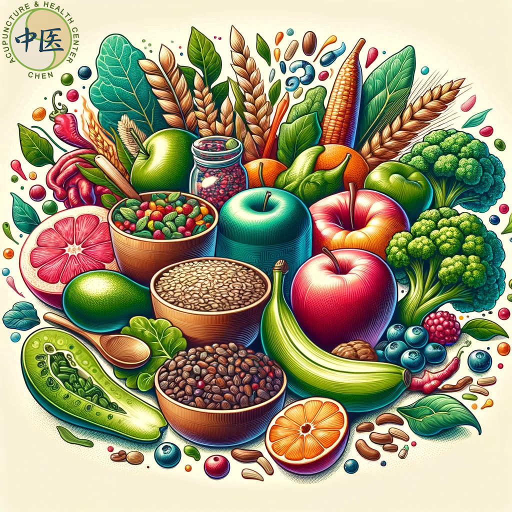TCM adviseert een dieet dat rijk is aan volle granen, bladgroenten, en fruit met veel vezels. Om de spijsvertering te bevorderen en verstopping te voorkomen. Deze voedingsmiddelen zijn volgens de TCM kruidentheorie en de theorie van de vijf elementen essentieel voor het in balans brengen van het lichaam. Volle granen zoals bruine rijst en gerst ondersteunen de milt en maag, de centrale organen binnen TCM die verantwoordelijk zijn voor de spijsvertering en absorptie van voedingsstoffen. Bladgroenten en vezelrijk fruit bevorderen de beweging van Qi (energie). En helpen bij het uitscheiden van afvalstoffen, essentieel voor het voorkomen van verstopping.