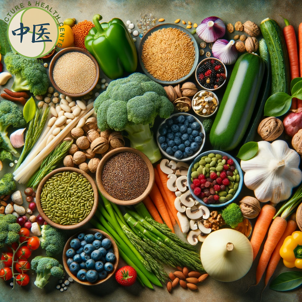 - Bladgroenten en groene groenten: Gekoppeld aan de Lever volgens de 5 elementen theorie, helpen deze voedingsmiddelen bij het bevorderen van een vrije stroom van Qi en verminderen van stress en spanning. De kleur groen resoneert met het Houtelement. Dat verbonden is met de Lever en Galblaas, en ondersteunt de ontgifting en voeding van het bloed.