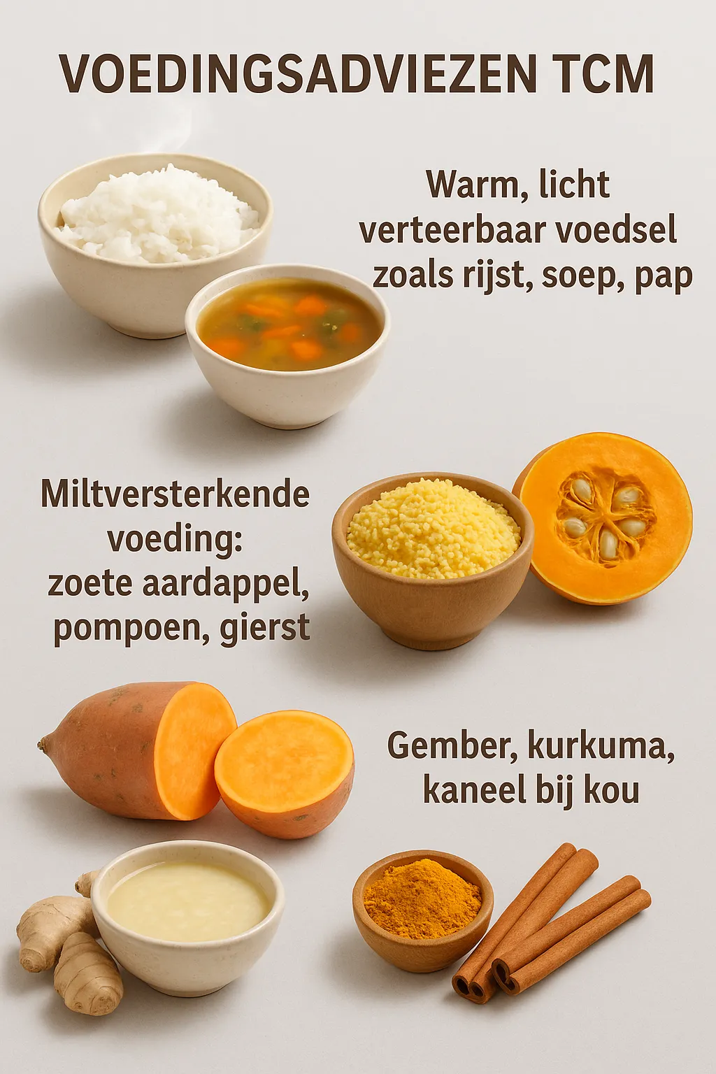 - Miltversterkende voeding: zoete aardappel, pompoen, gierst