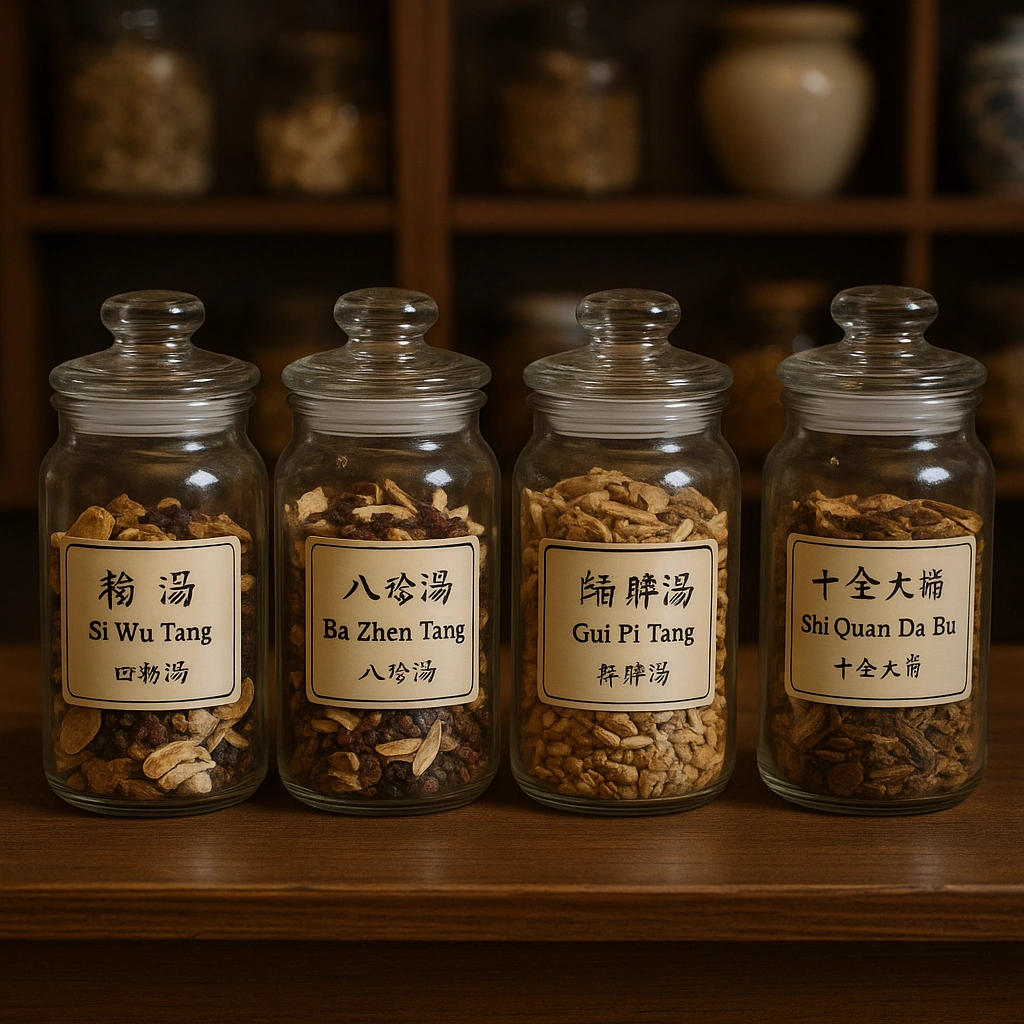 Daarnaast is Ba Zhen Tang (八珍湯) belangrijk. Deze formule combineert Qi-tonica met Bloedvoedende kruiden. Het resultaat: meer kracht, betere spijsvertering en sneller herstel na ziekte.