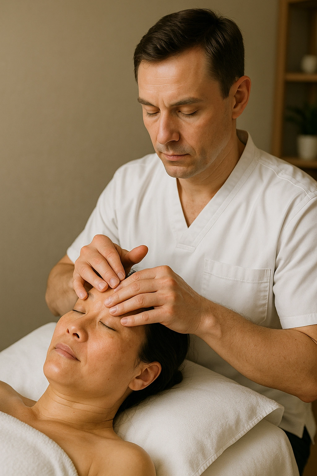 De behandeling gebruikt dynamische technieken. Kneden stimuleert de spieren rond het gezicht en bevordert de lokale circulatie. Drukken op specifieke acupressuurpunten opent de neuspassages en vermindert zwelling. Strijkende bewegingen kalmeren het zenuwstelsel en geven een gevoel van rust. Door deze combinatie ontstaat een krachtig en harmoniserend effect.
